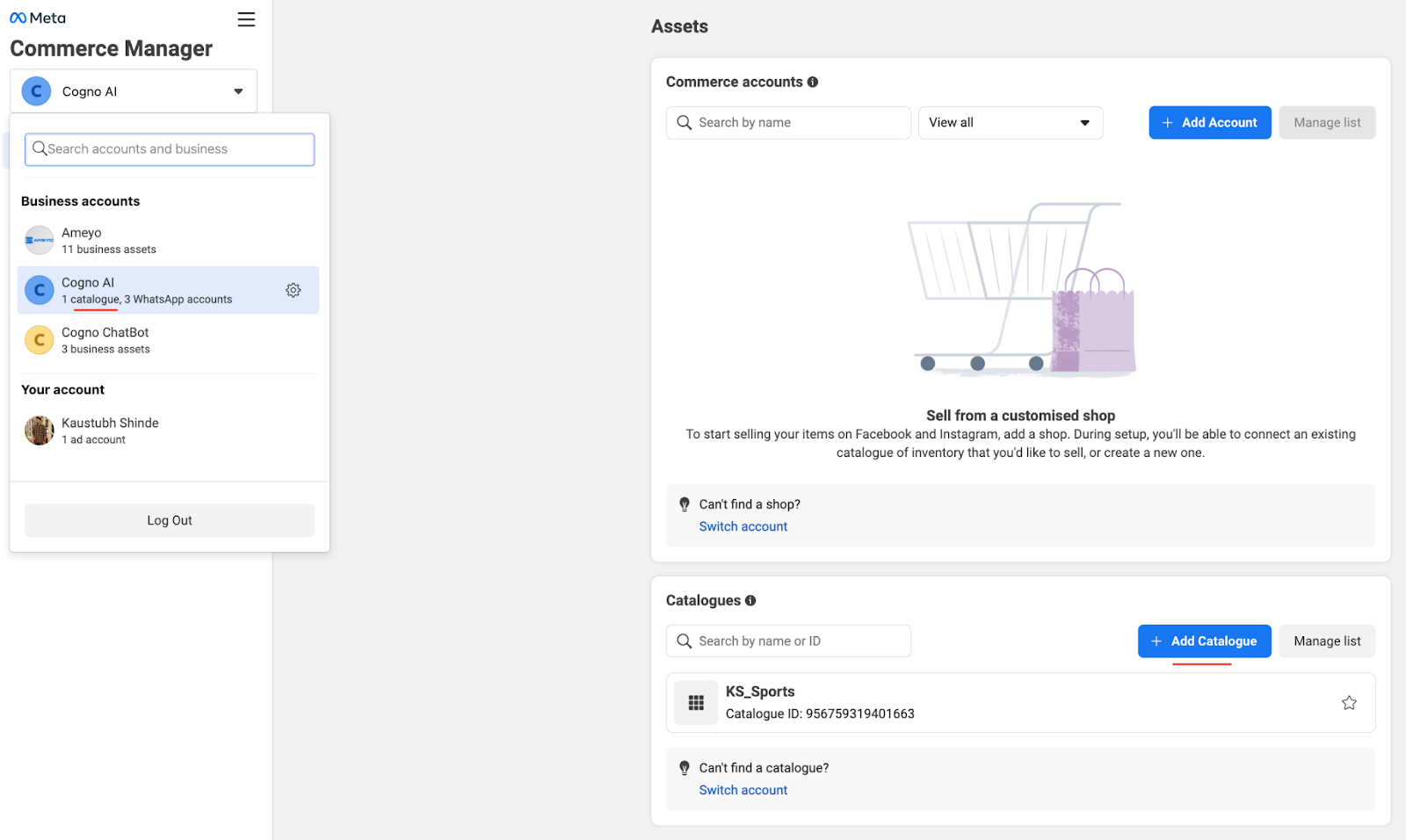 Select the correct WhatsApp Business Manager Account (WABA) where you want to connect this Catalog which has the Phone number present.
