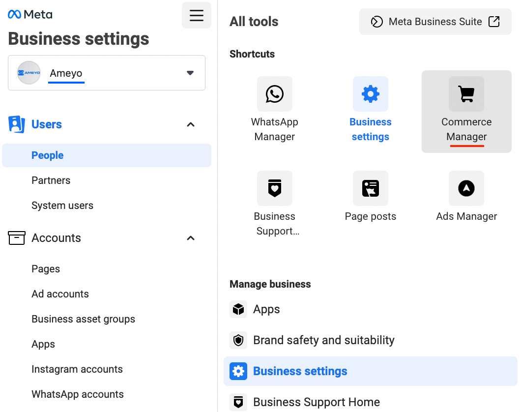 Login to your Meta Business Account and Go to the Business Settings - https://business.facebook.com/settings/product-catalogs