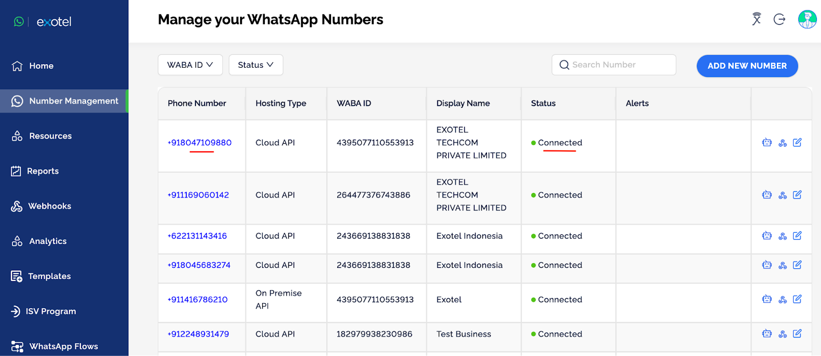 Connected Phone Number: The status of the number on which you want to enable the catalog should be Active. This can be checked from your WhatsApp Business Manager Account from the Meta or Exotel WhatsApp console.