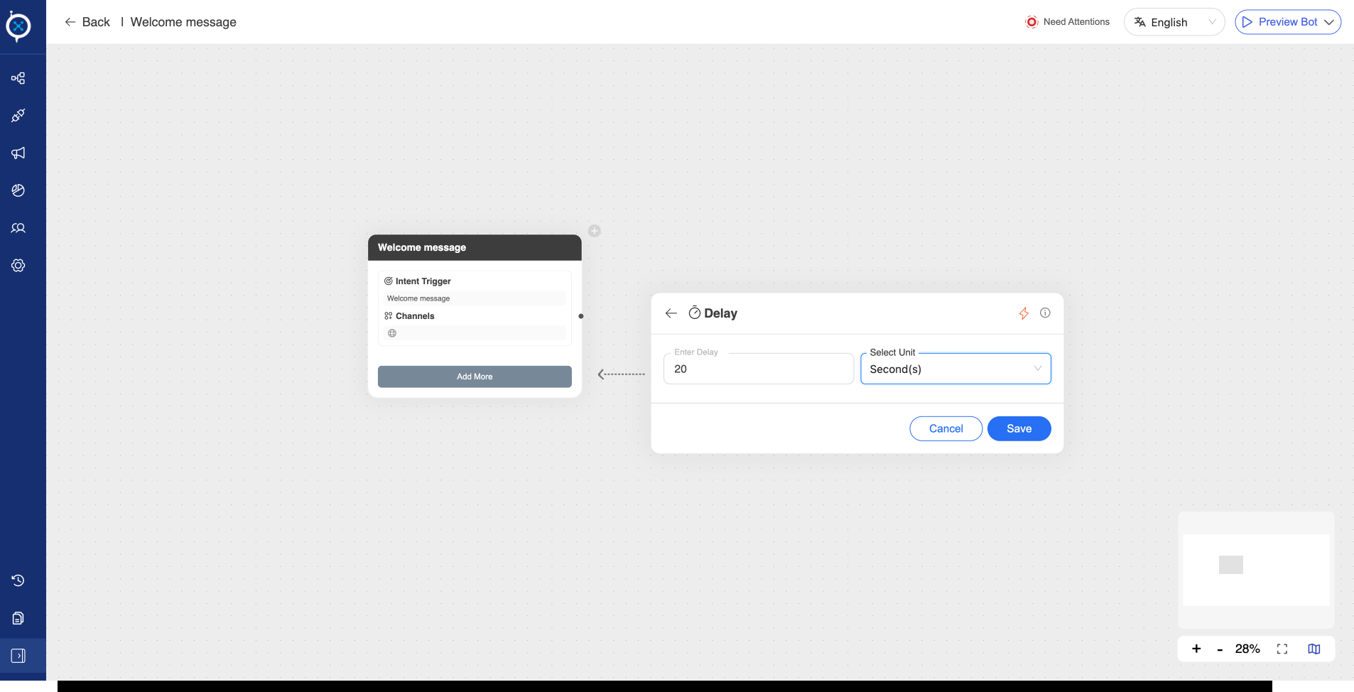 This action pauses the conversation for a set period, which can make the bot feel more natural.
