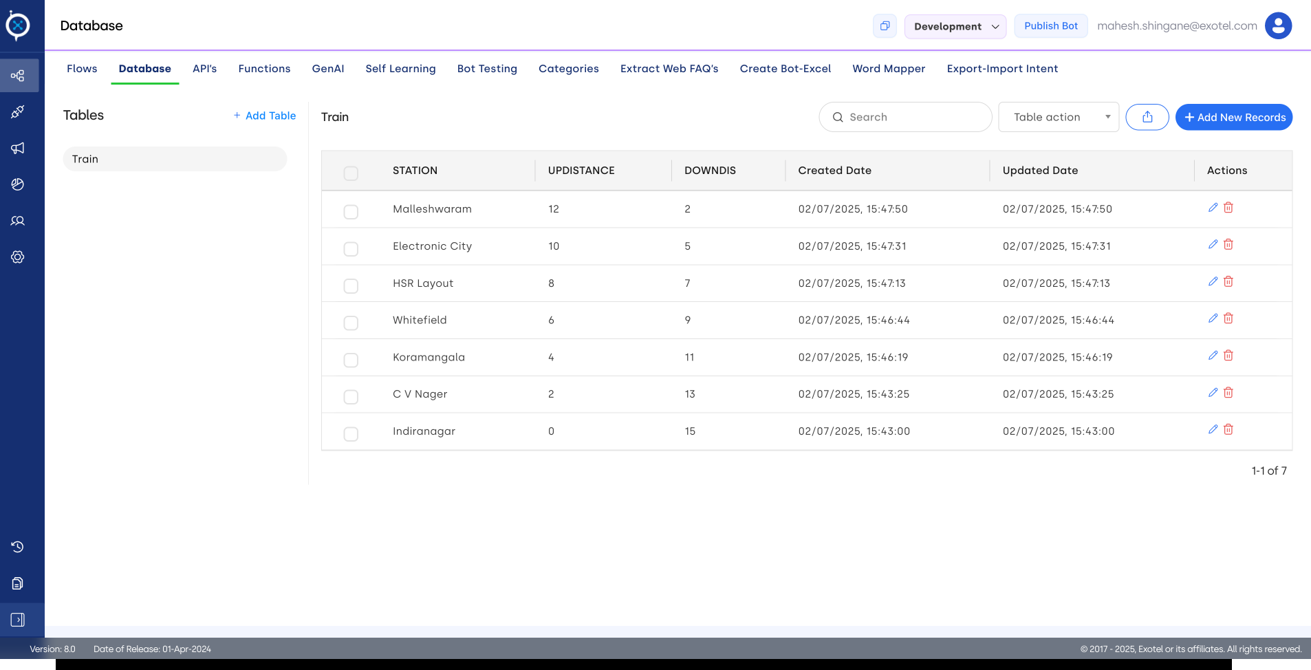 The Database is an integrated feature within the Exo-Chatbot platform that allows you to create, manage, and utilize custom tables to store and retrieve persistent information. It acts as the chatbot's memory, enabling you to save data collected from users during a conversation and use it in subsequent interactions or for offline analysis.